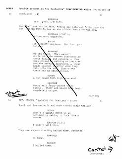 De las sides que he leido comienza Booth haciendo una demostración con los cuchilos y Brennan se sorprende, pero tiene que guardar las apariencias delante de Henry Simon, uno del circo.